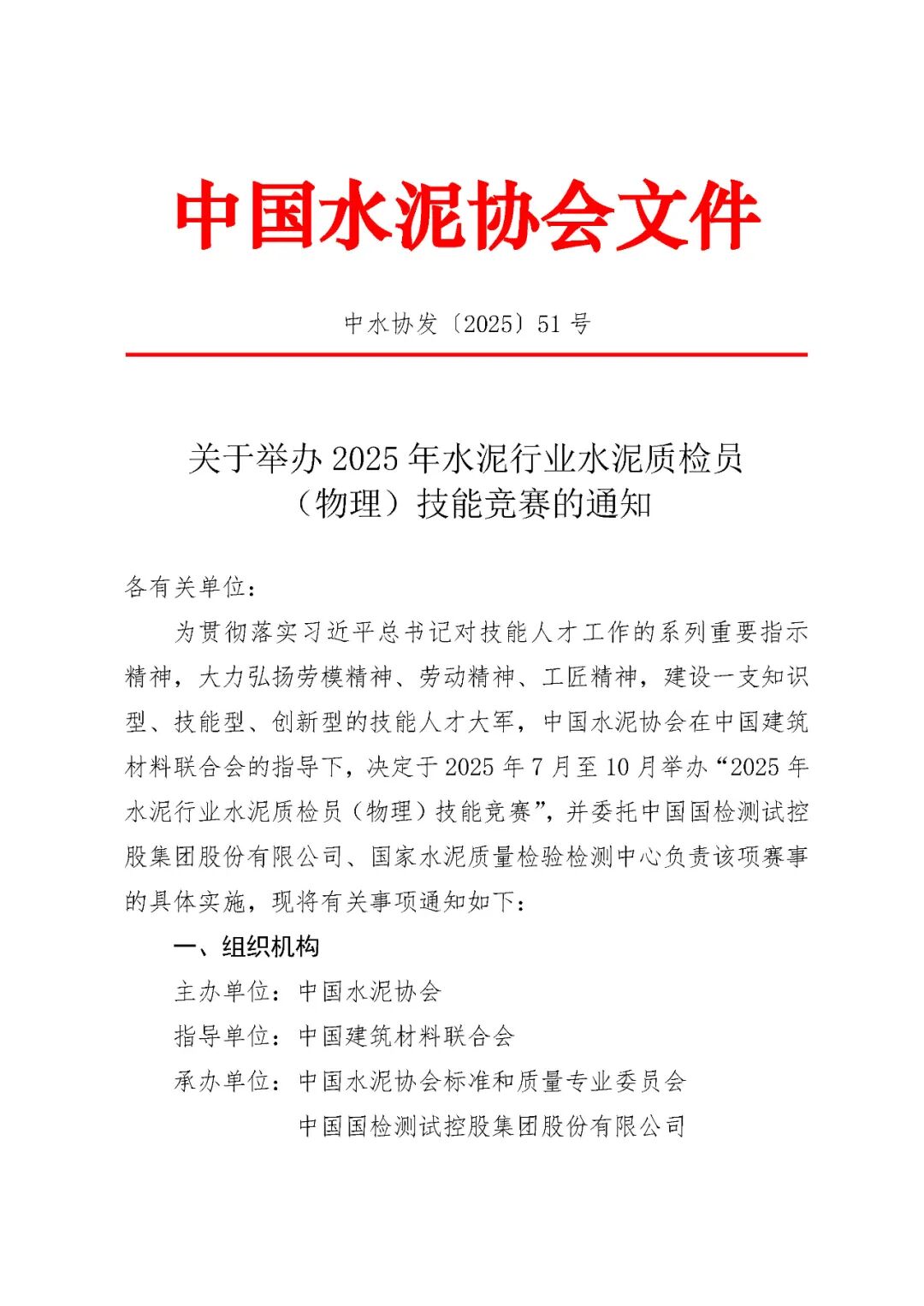 关于举办2025年水泥行业水泥质检员(物理)技能竞赛的通知